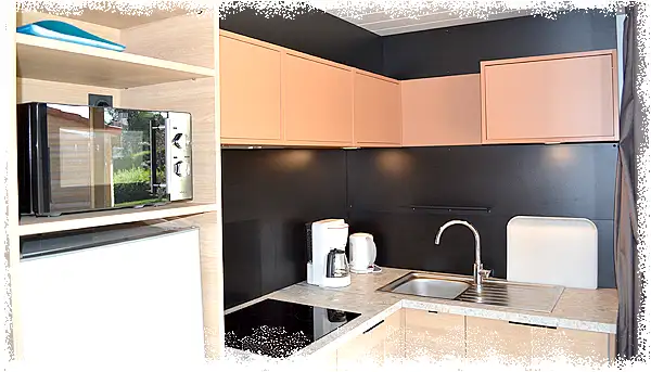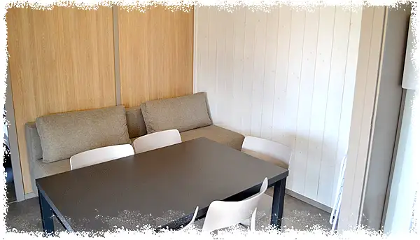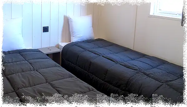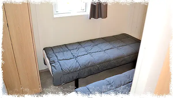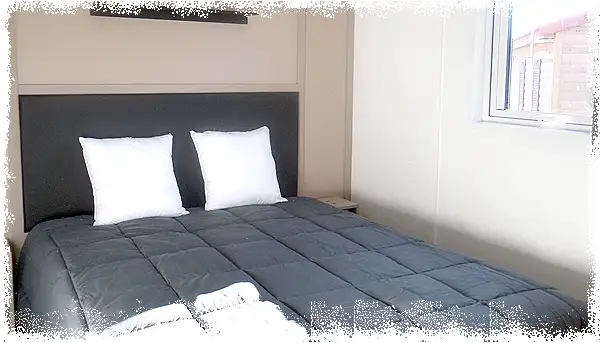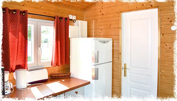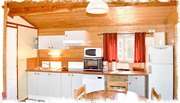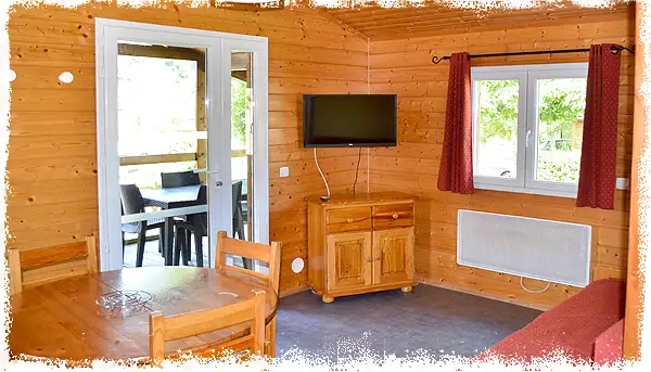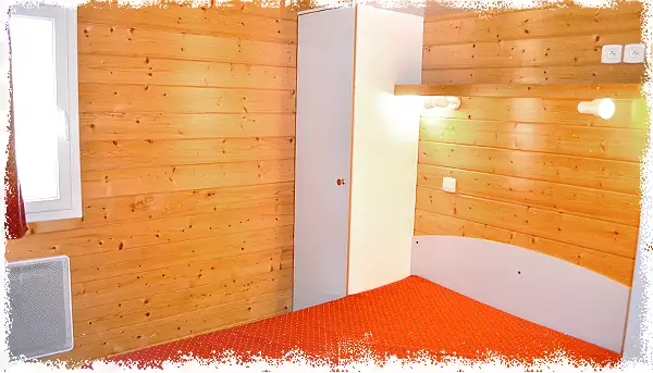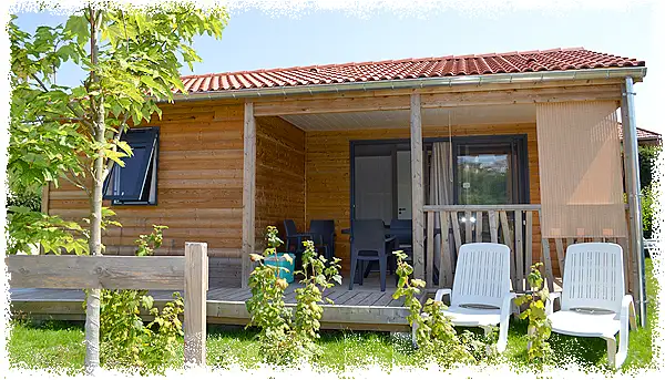 13 chalets (dont 2 PMR)Capacité : 4 à 6 personnesSurface habitable : environ 25 m² - Terrasse couverte : 10 m² - Terrain en herbe et arboré Aménagement : 1 chambre avec 1 lit double + placard 1 chambre avec 1 lit double + 1 lit simple superposé ou 2 lits simples + placard → Je réserve en ligne |