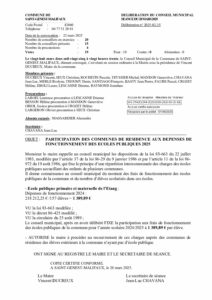 99_DE-25 – Participation des communes de résidence aux dépenses de fonctionnement des écoles 2025